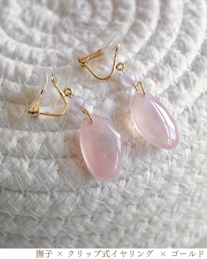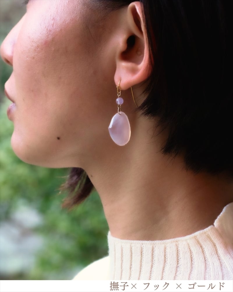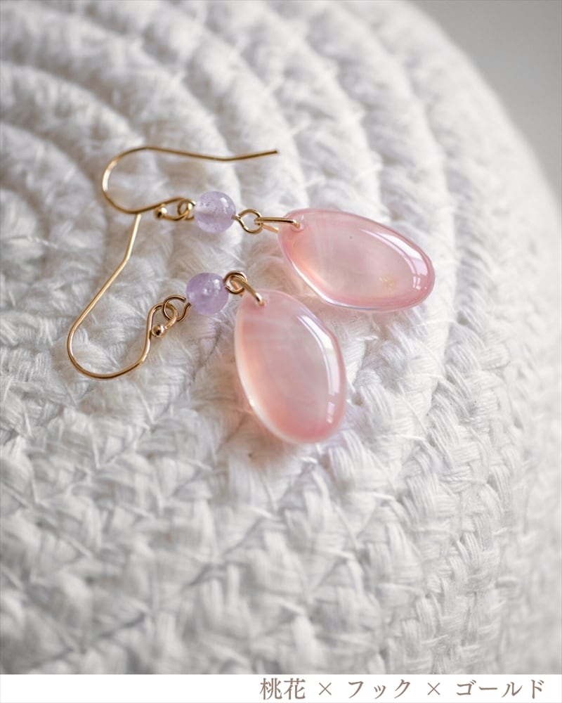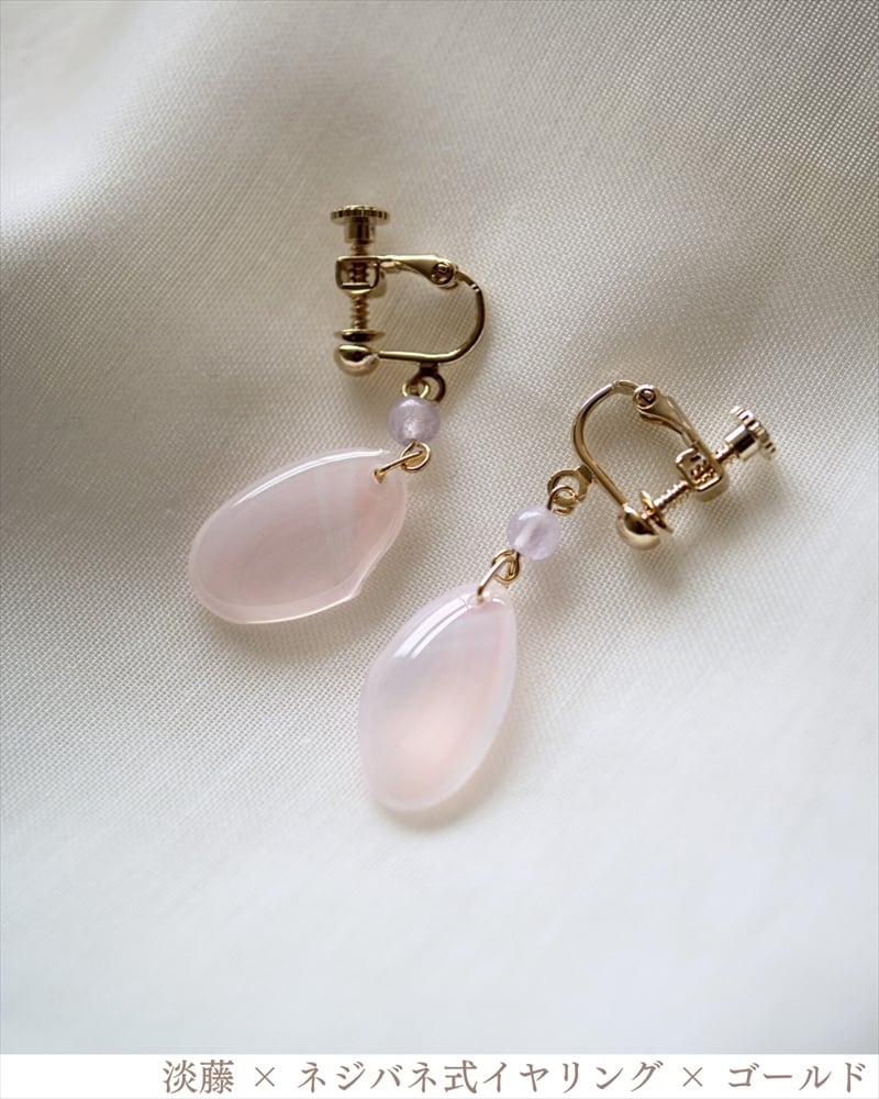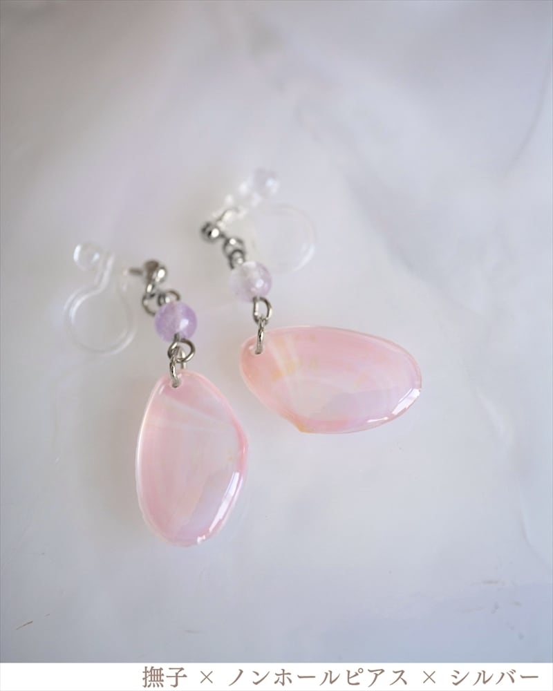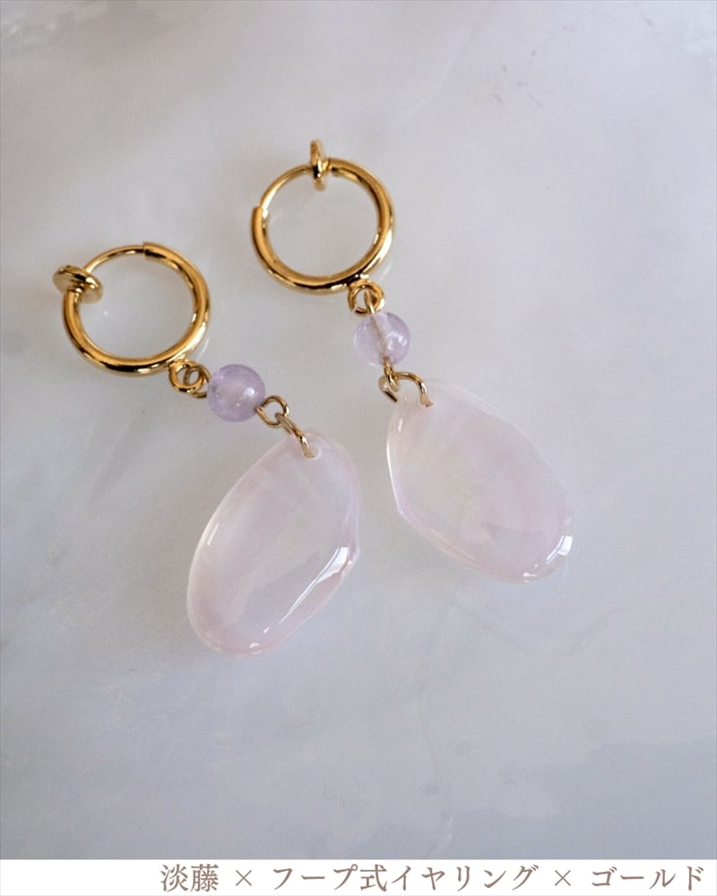 伝統的な色彩の一つである淡藤色の天然石に、ふんわりと揺らぐ桜貝……日本らしい、清らかな印象与えてくれます。