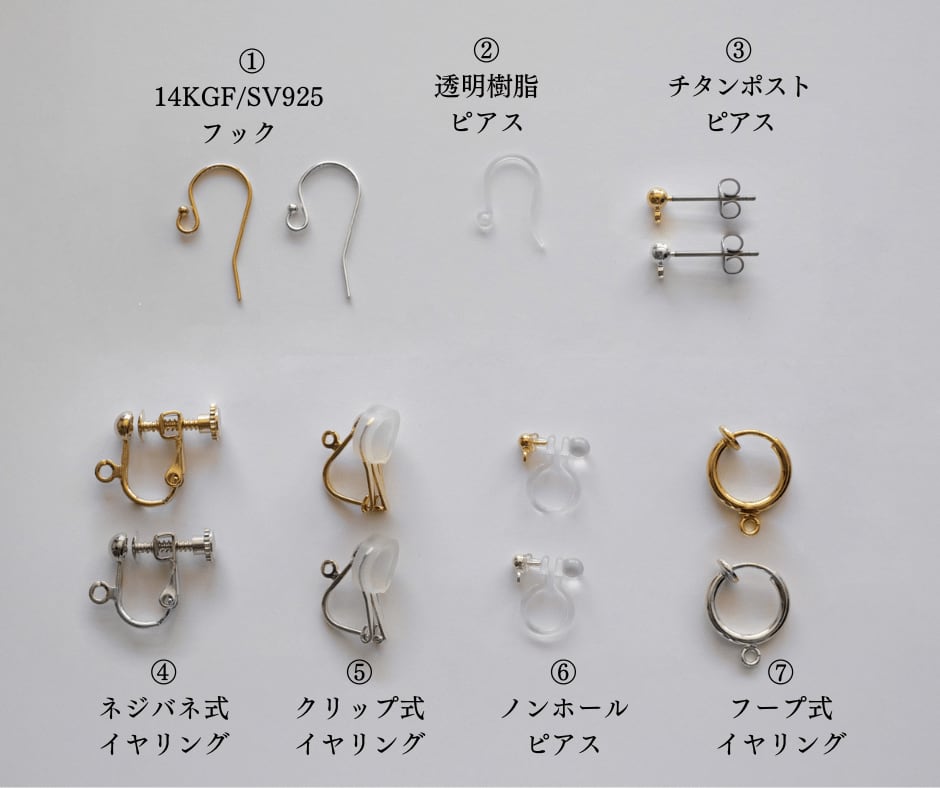 ※ピアス・イヤリング部位:素材表記のないオプションは真鍮メッキ