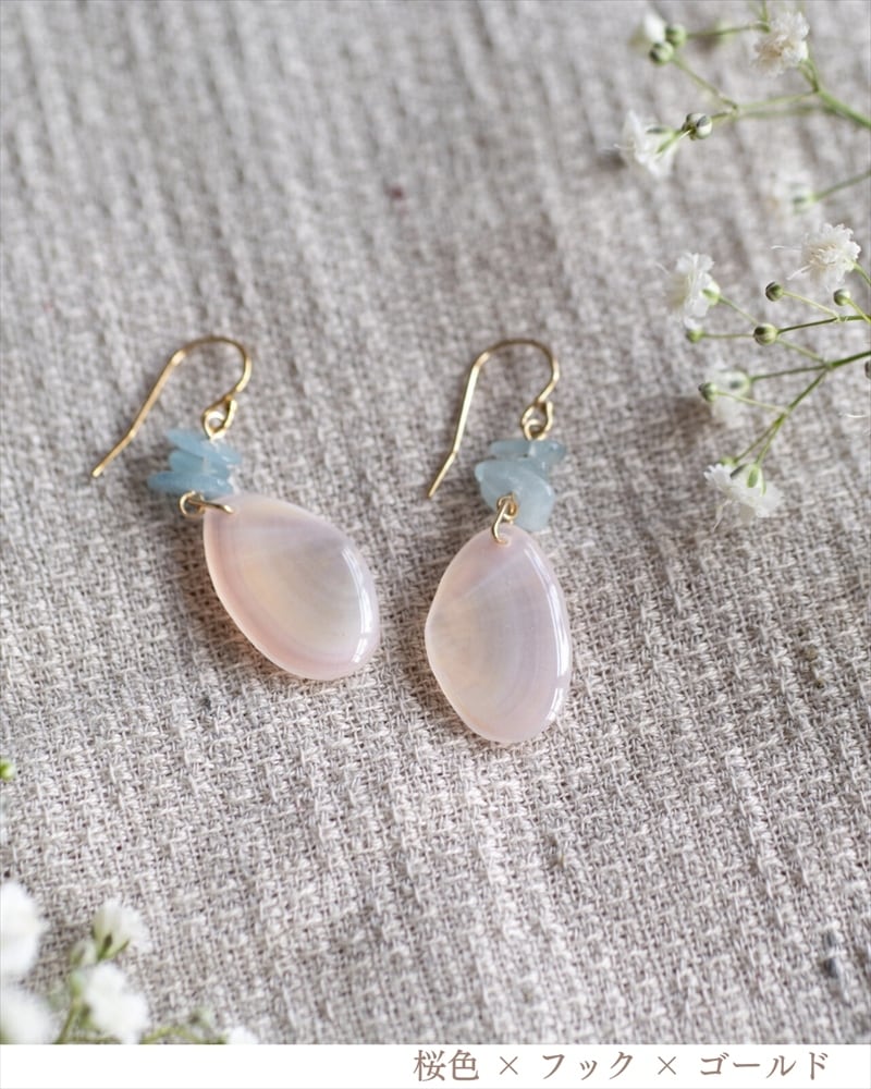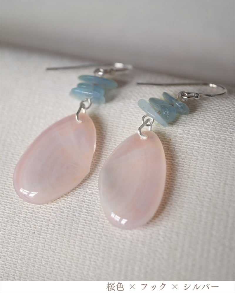 優しい色の桜貝が軽やかに揺れるデザインは、清楚で柔らかな印象を与えてくれるとともに、お顔周りを明るく華やかに演出します。