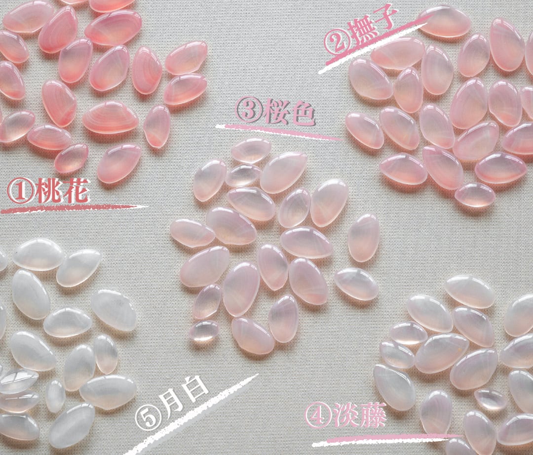 桜貝の色は、私たちの肌や瞳、髪がそれぞれ異なるように、一枚ごとに個性を持っています。