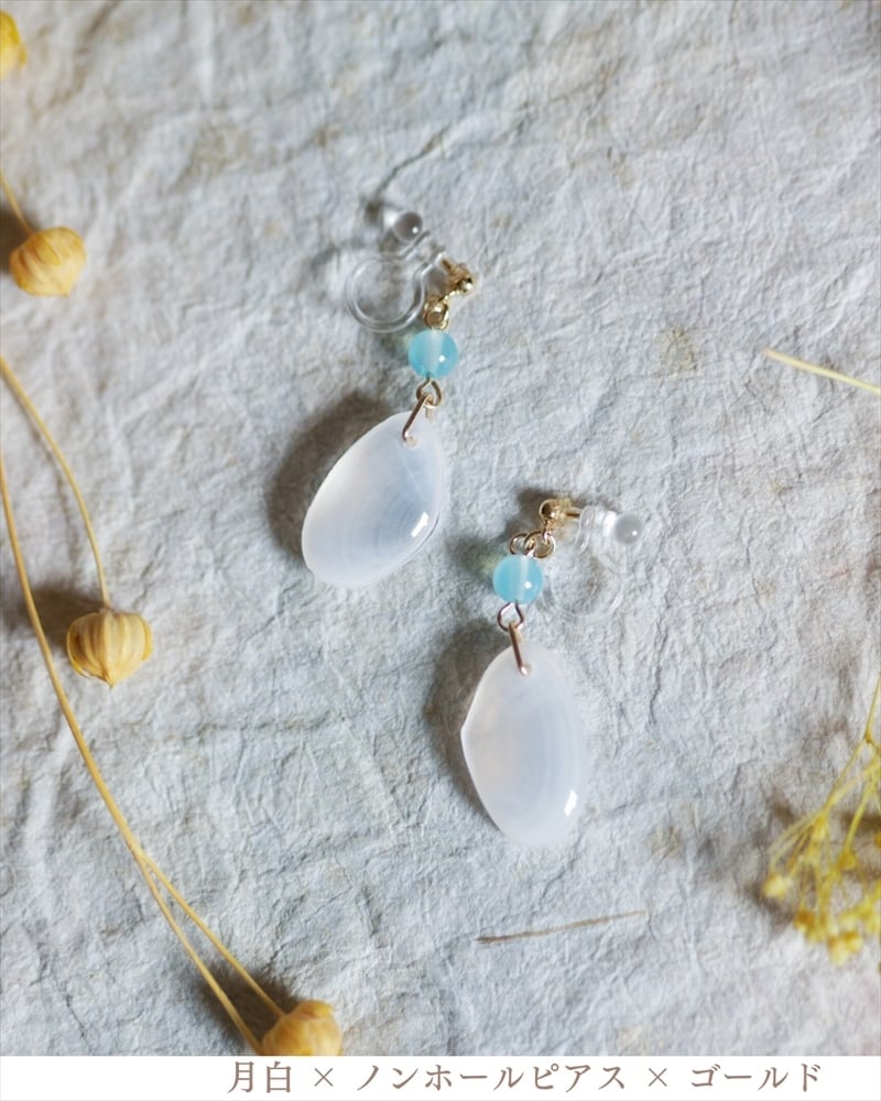 桜貝の中でも特に希少で、透き通るような白は大人の落ち着きを引き立てます。