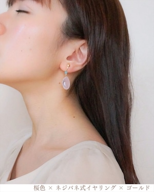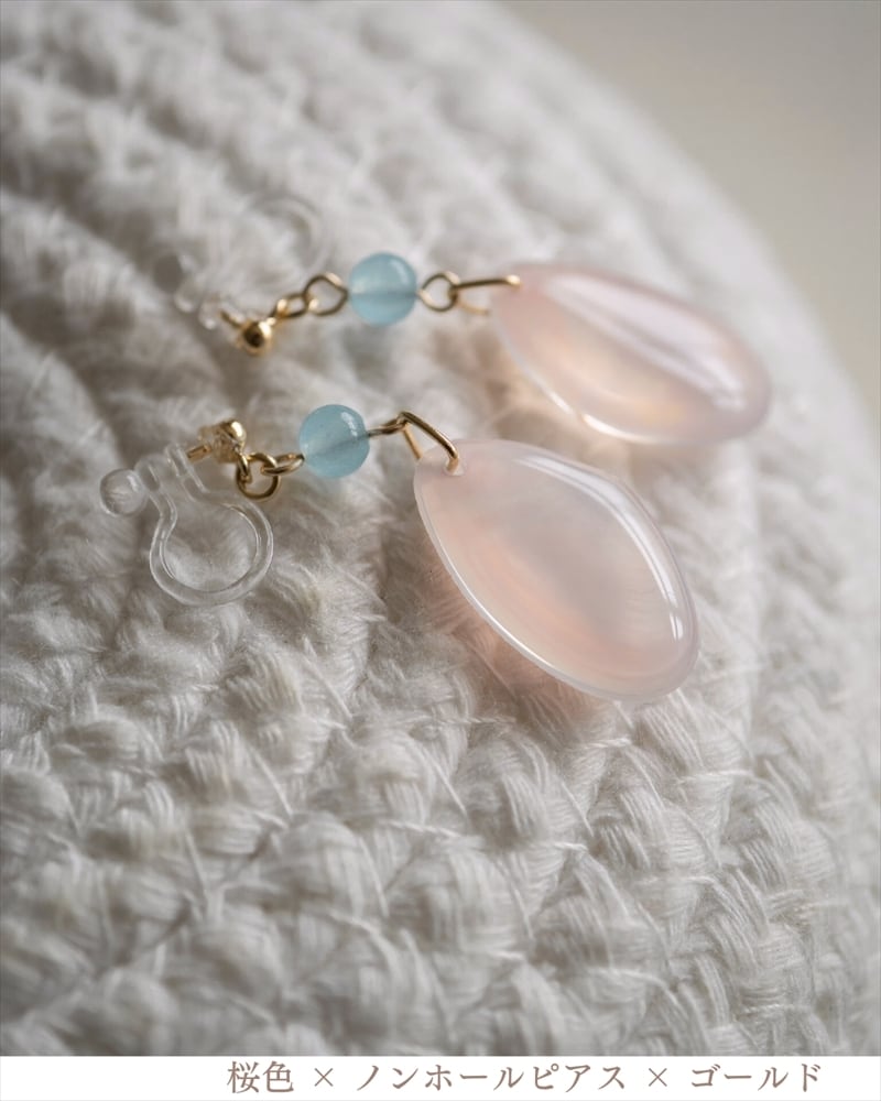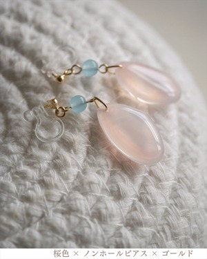 さくらひとえ ピアス・イヤリング 14KGF/SV925 ブルーカルセドニー
