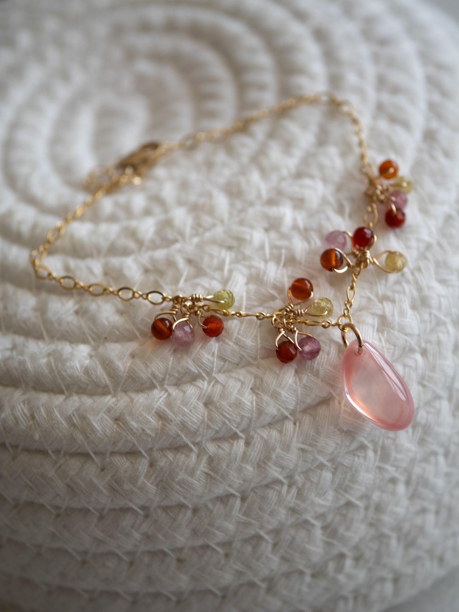 赤を中心とした天然石たちが、高揚感を与えてくれる組み合わせです。