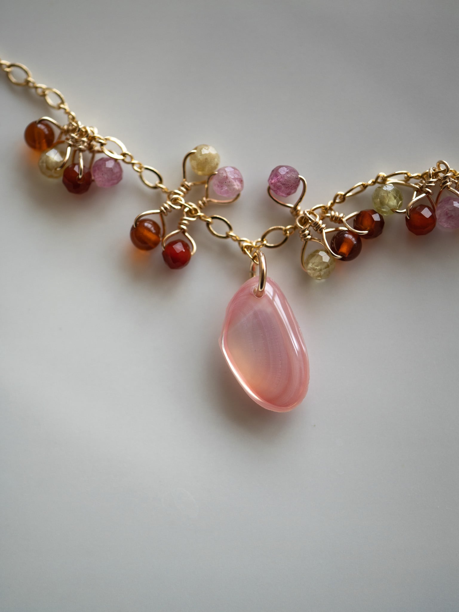 揺れる桜貝と天然石が、鮮やかに実ったリンゴやザクロのよう。