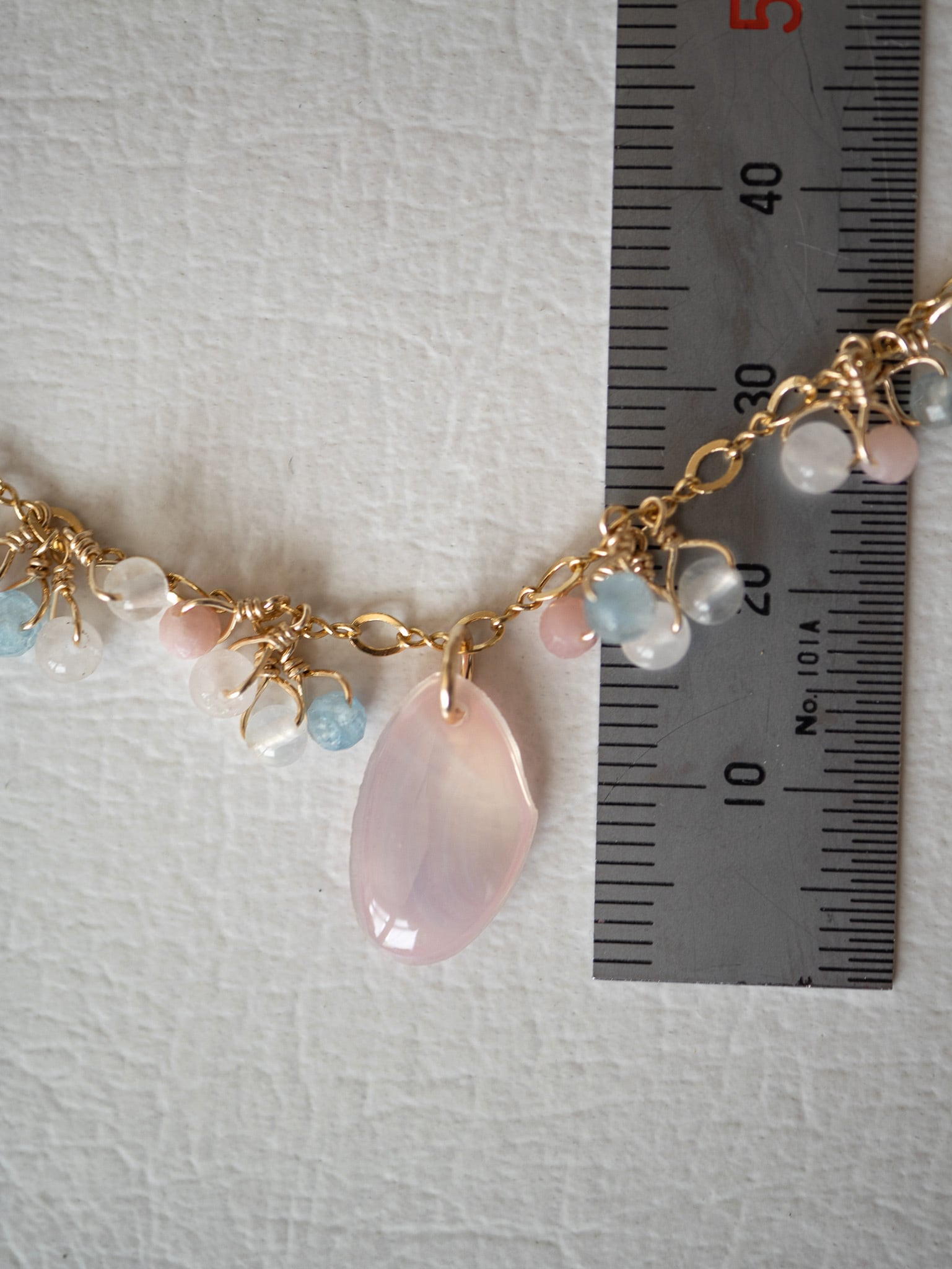 ペールトーンの天然石たちが、愛らしさを演出する組み合わせです。