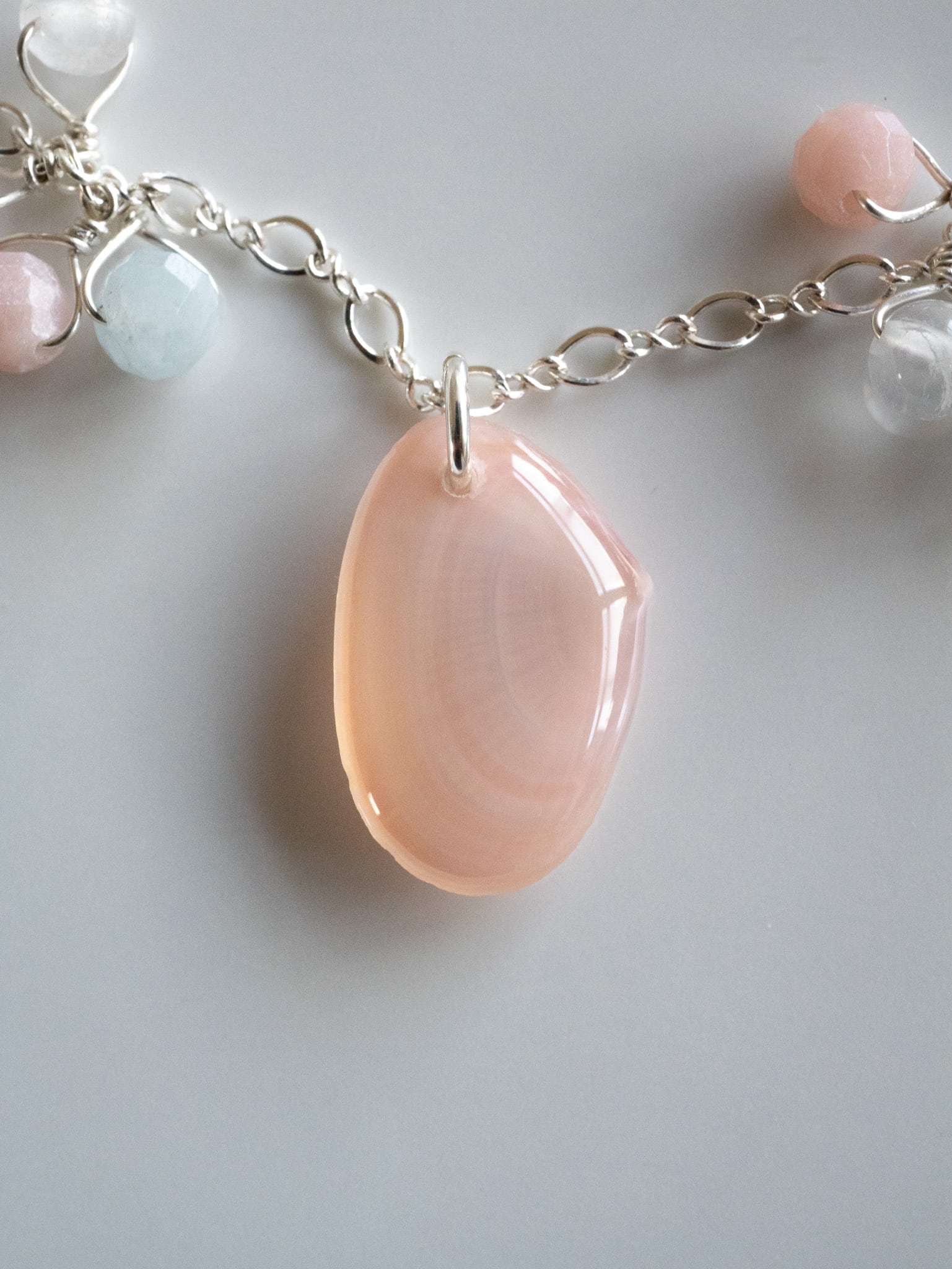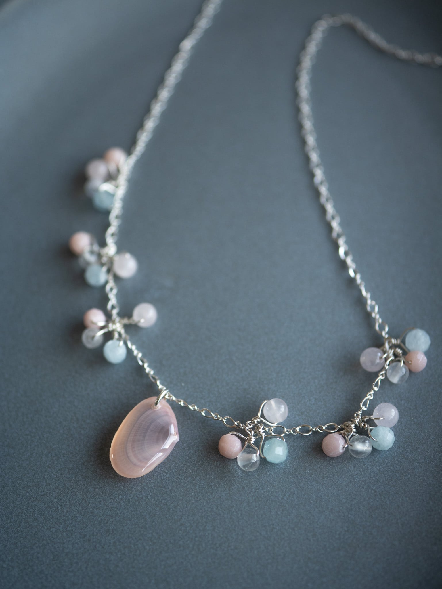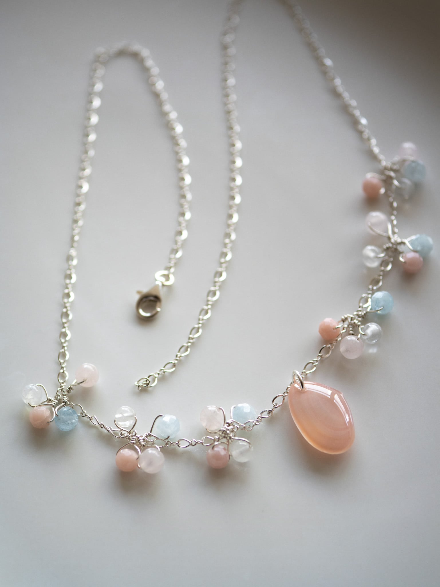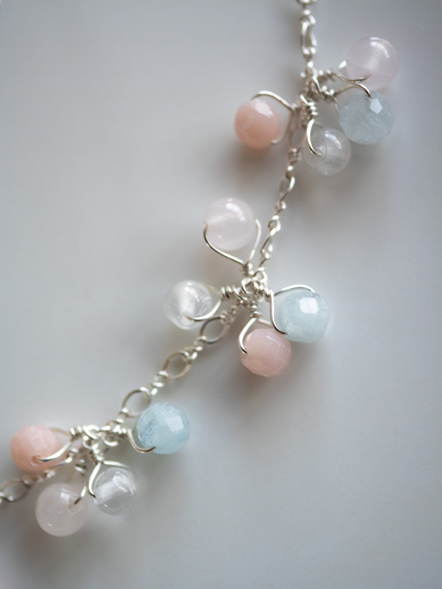 同系色の天然石とまとめ、可愛らしい雰囲気に仕上げました。