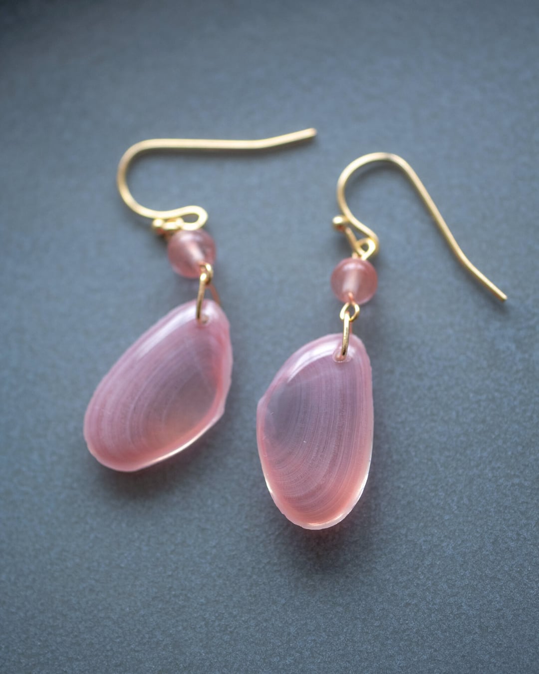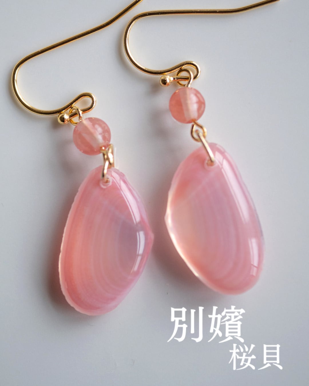 桜貝を丸ごと1枚を使用した「さくらひとえ」のピアス・イヤリング。