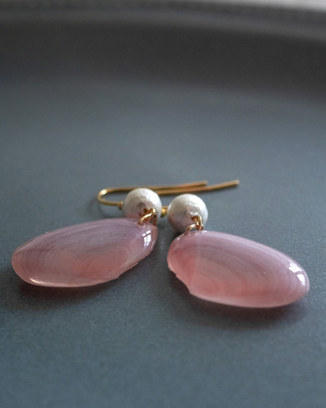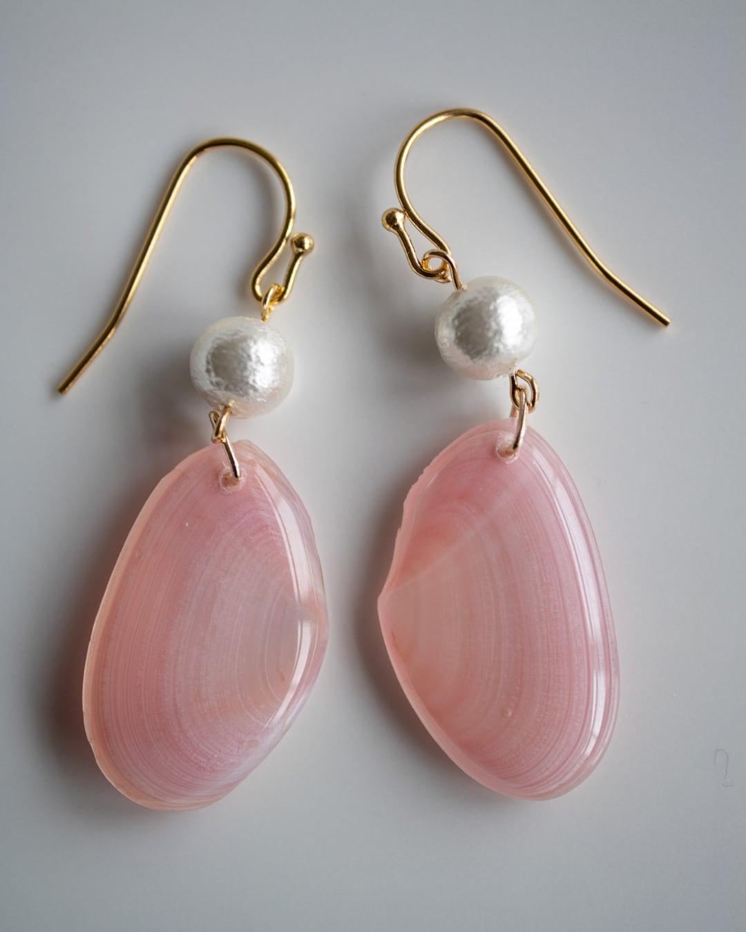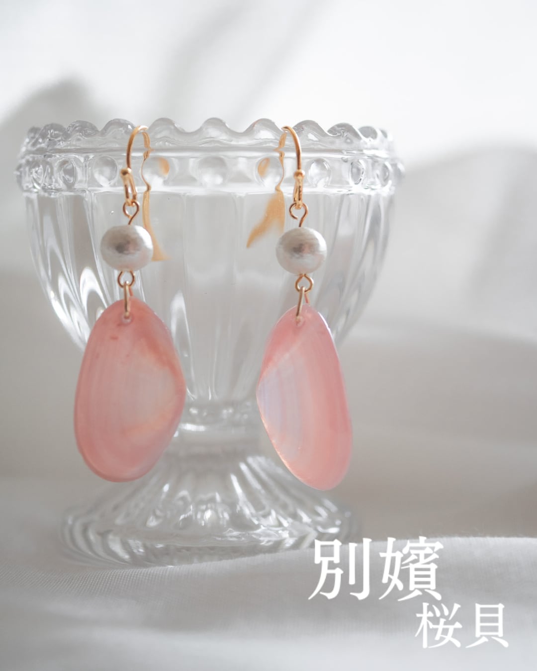 桜貝を丸ごと1枚を使用した「さくらひとえ」のピアス・イヤリング。
