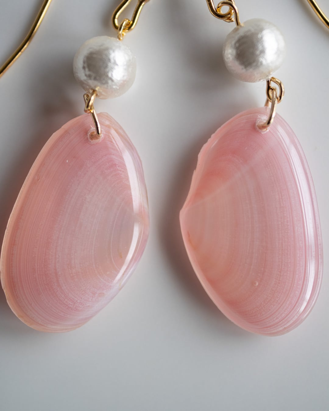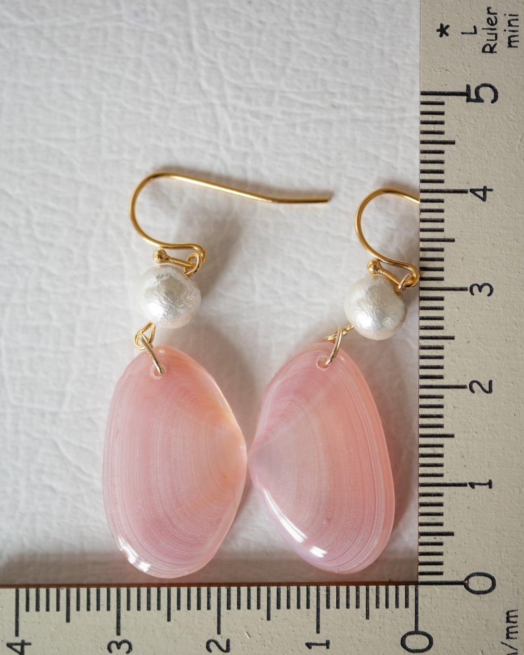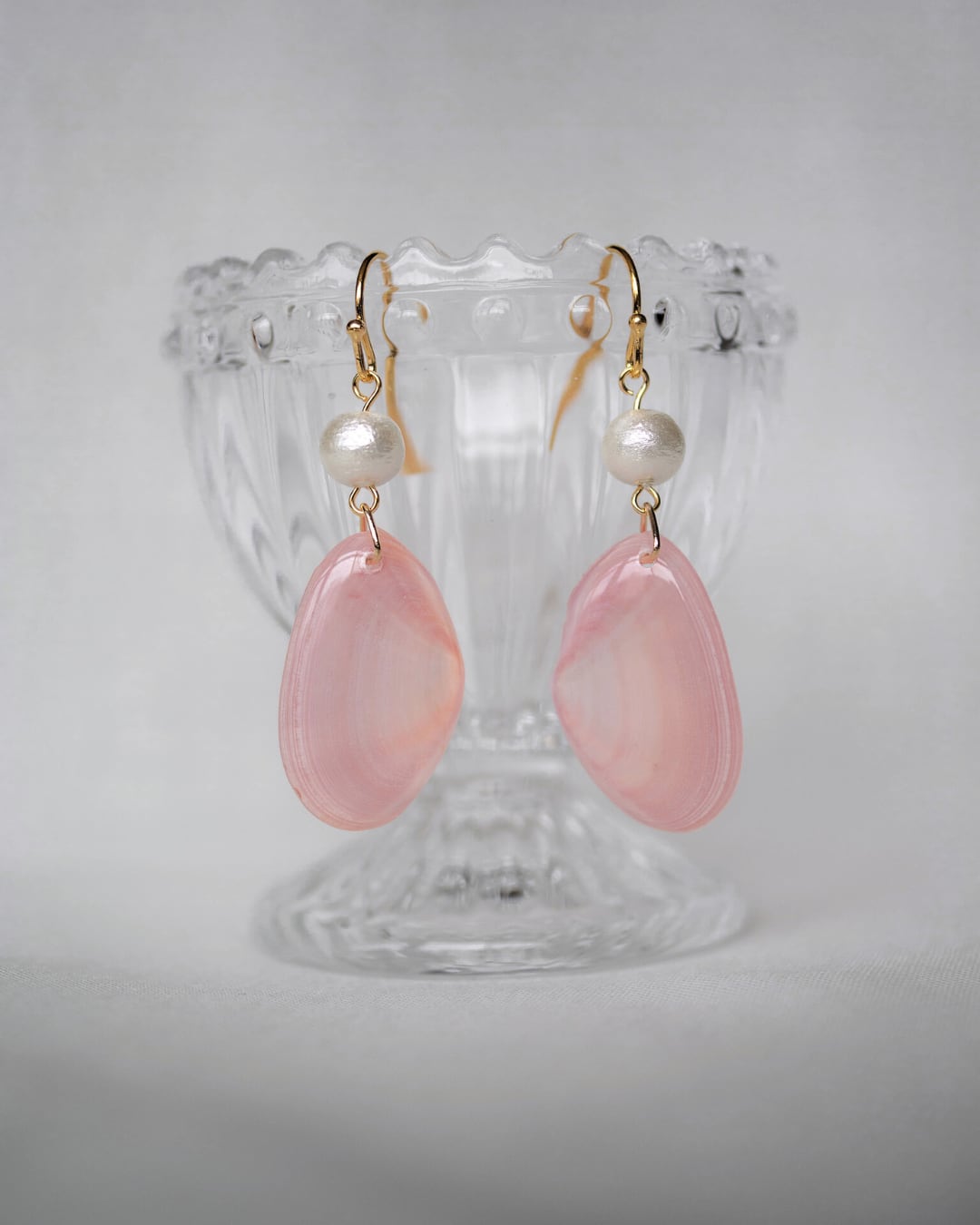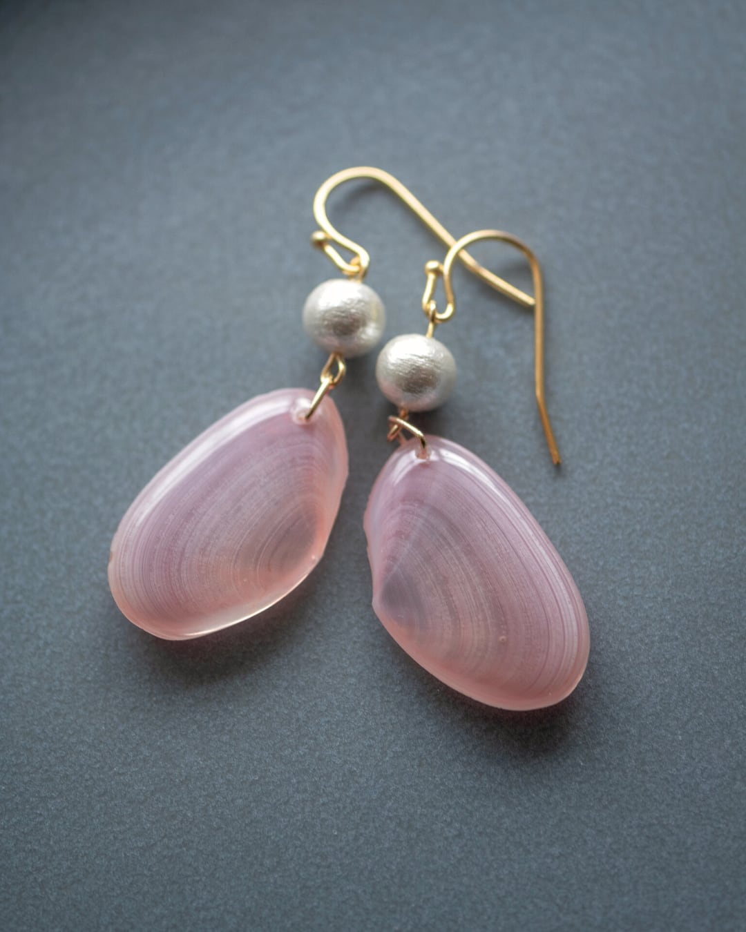 桜貝を丸ごと1枚を使用した「さくらひとえ」のピアス・イヤリング。