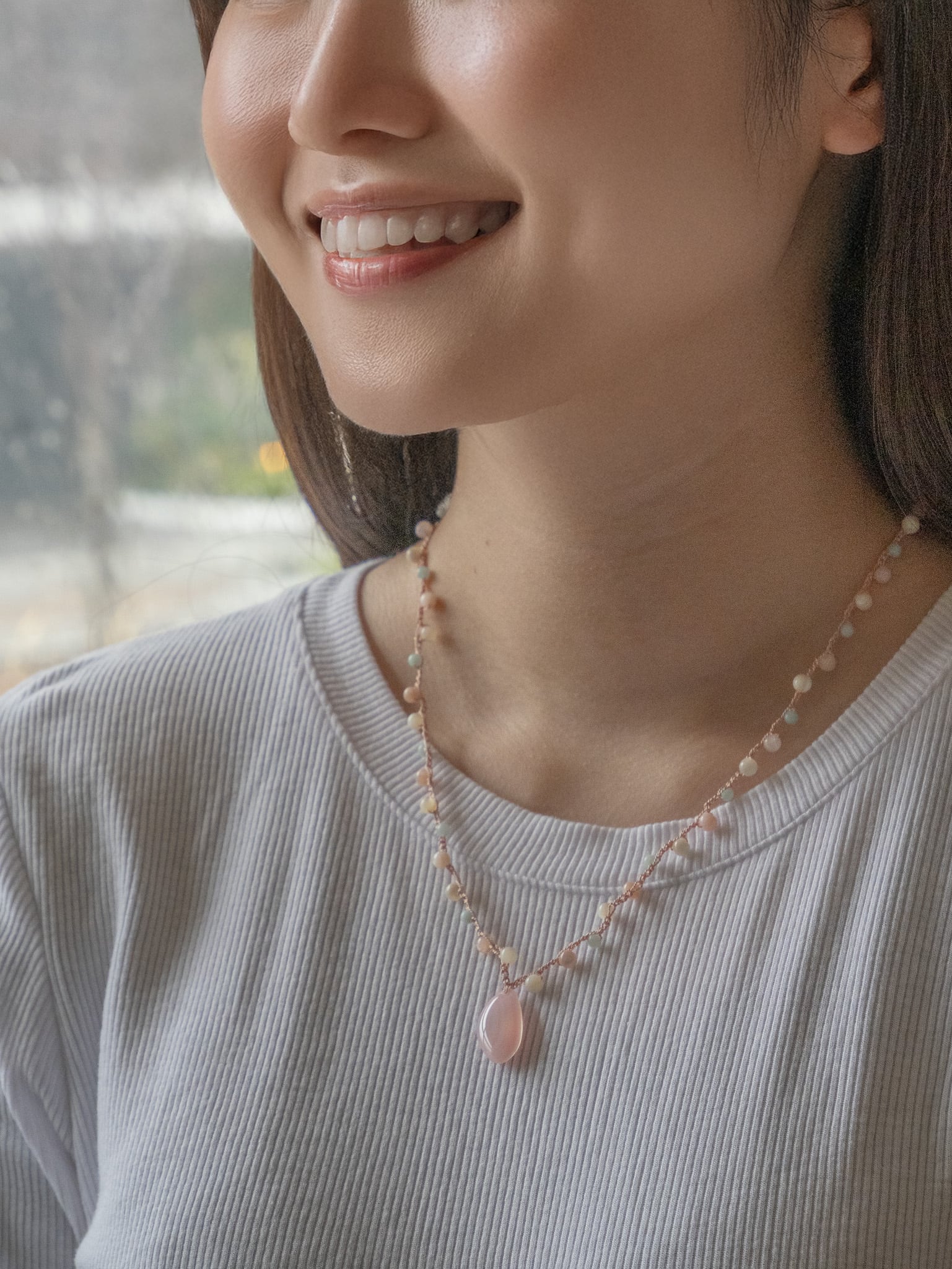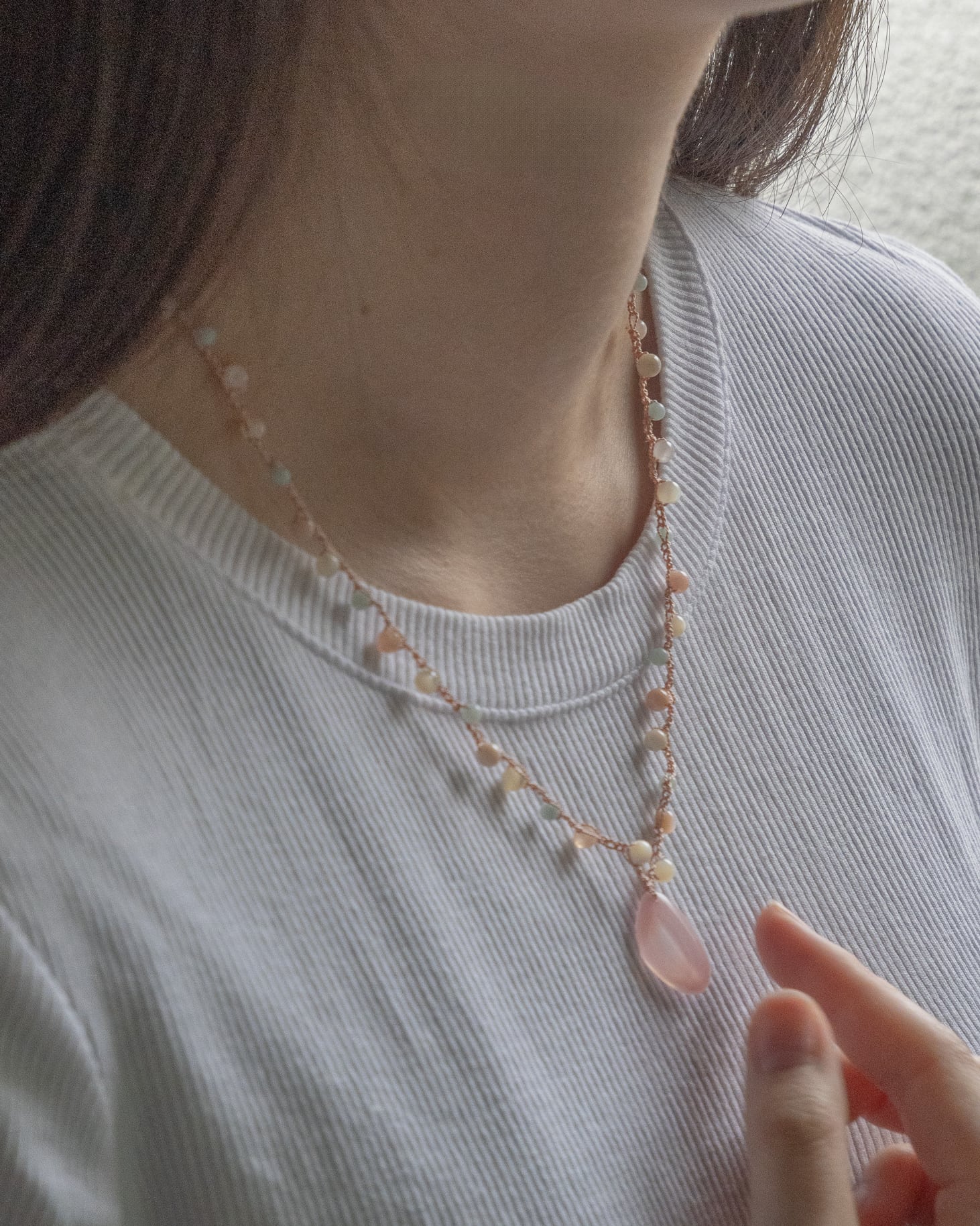 とびきり愛らしい別嬪さんに、ミルキーな天然石たちを組み合わせました。