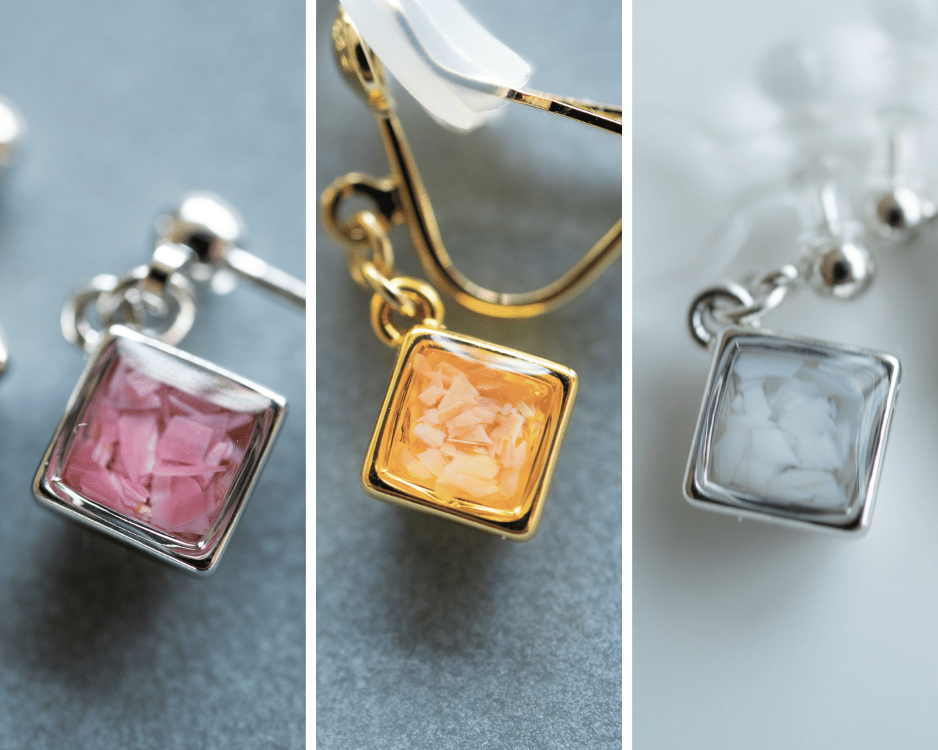 波に磨かれ、かすかに透ける小さな破片を一つひとつ選り分け、職人の手で丁寧に仕上げて生まれたアクセサリーが「さくらゆめみし」です。