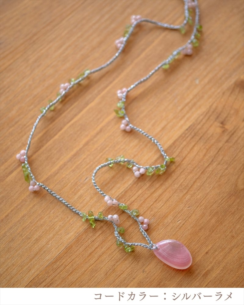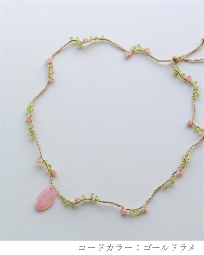 工夫次第で様々なコーディネートに合わせられる便利なアイテム。どんな装いにの日にも、桜貝が貴方に寄り添います。