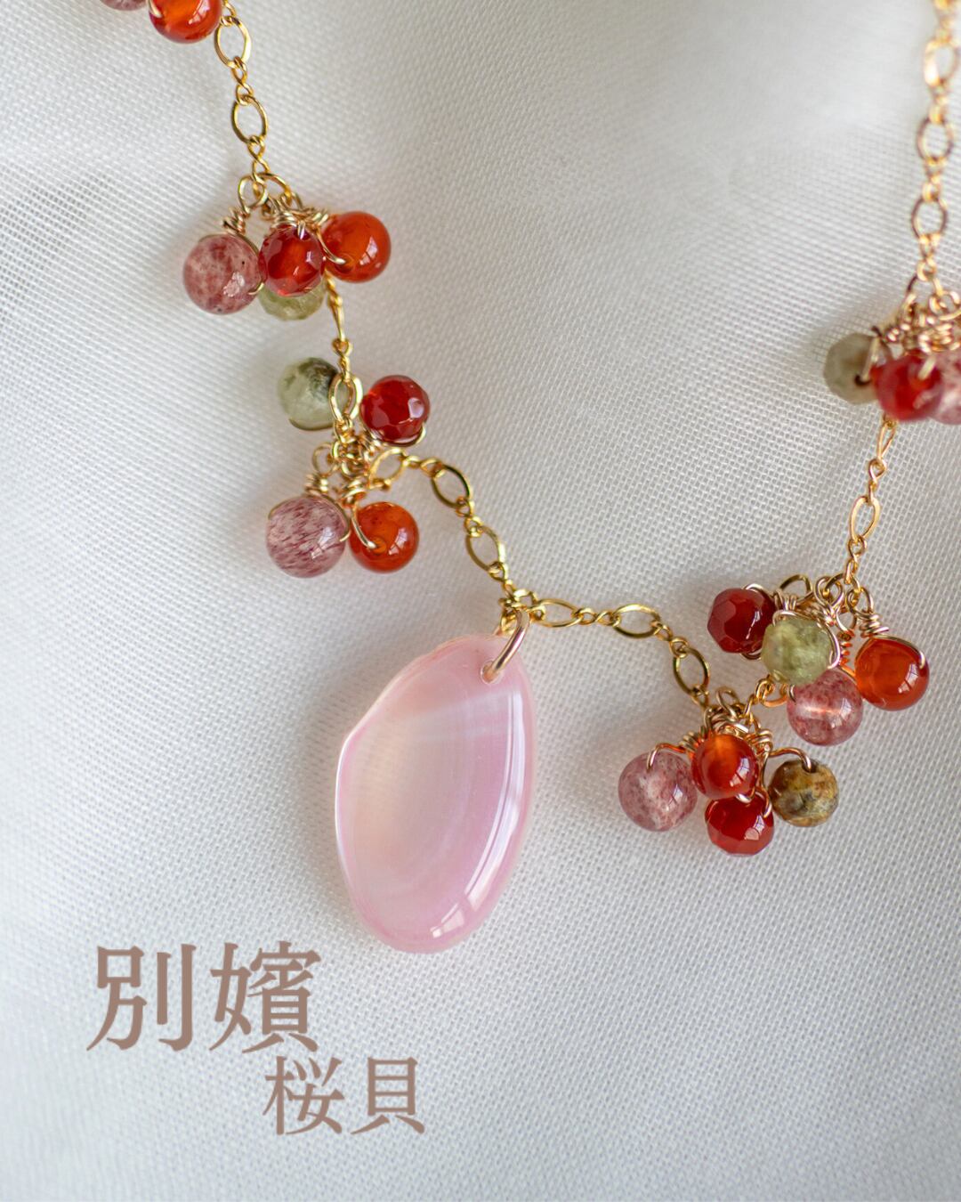 カバザクラの別嬪さんを、華やかなネックレスに仕立てました。